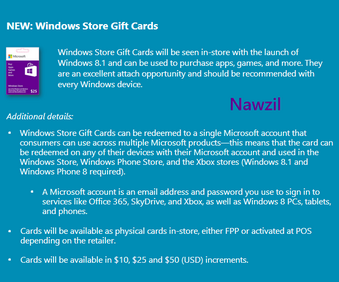 Microsoft Windows Store Gift Card - $25 (Email Delivery) Get a Windows Store gift card for apps, games and entertainment on Windows and Xbox Buy popular apps and games on Windows and Xbox Great as a gift, allowance, or credit card alternative - no fees or expiration dates Works with Windows PCs, tablets and phones, and Xbox* Popular apps