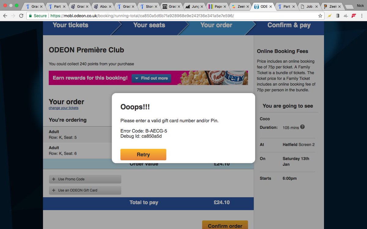 How to Buy - ODEON Vouchers The ODEON mobile site or use the ODEON apps On the CHOOSE YOUR TICKETS page you will be asked if you have a special code. Insert your code and select Code Type: 'Voucher' from the drop-down list. Important: Once the booking has been completed, the user will receive a booking confirmation email. Tickets can be collected at ATM's.
