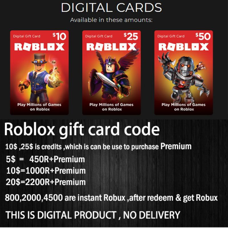 Roblox - Gift Cards Redeem Card Get more out of Roblox Shop Gift Cards Roblox Gift Cards are the easiest way to add credit you can spend toward Robux or a Premium subscription. Free Virtual Items Each gift card grants a free virtual item upon redemption and comes with a bonus code for an additional exclusive virtual item. Virtual Item Included Owl Perch Backpack